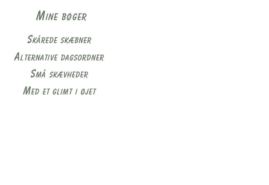 Nogle gange kan jeg blive helt trist over, at livet er for kort til at få skrevet alle de historier, der ligger og venter på mig. Men jeg gør mit bedste for at få så mange som muligt af dem ned på papiret.